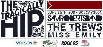 | Entertainment: | Tragically Hip, Sam Roberts, The Trews & Miss Emily |